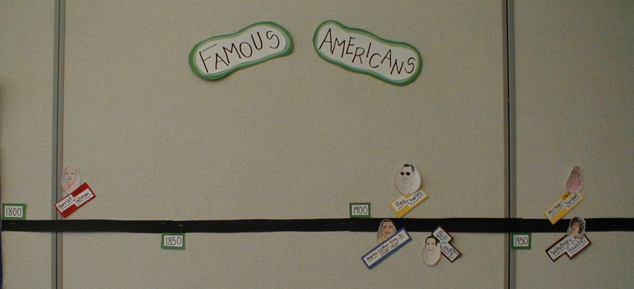 Ms. Hodges' class is learning about famous Americans. They are reading biographies and learning about individuals who helped shape our country. After they explore a famous American, they put that person on the timeline.
